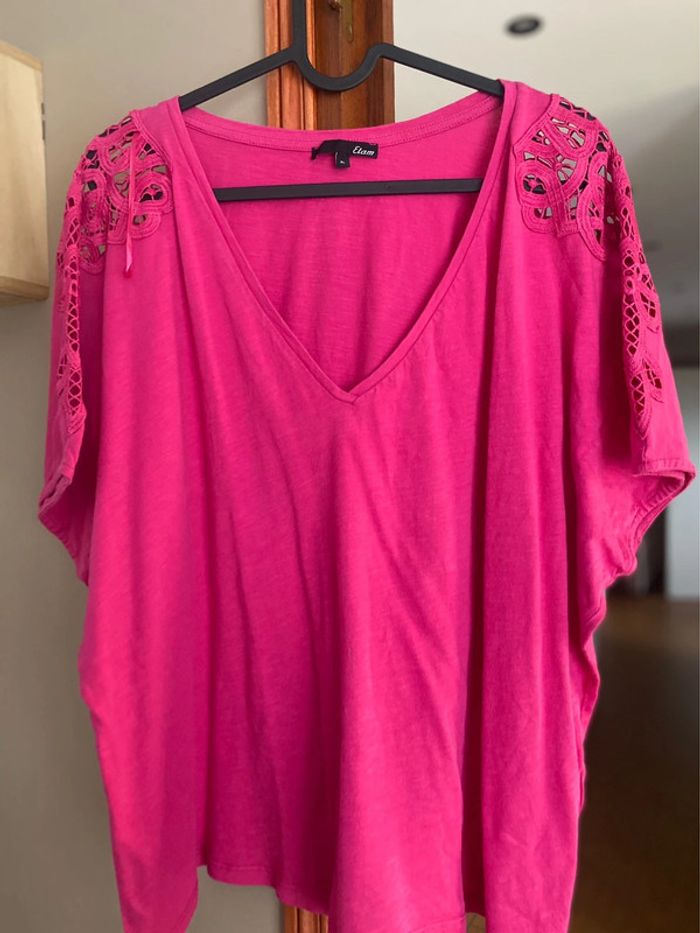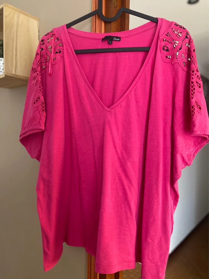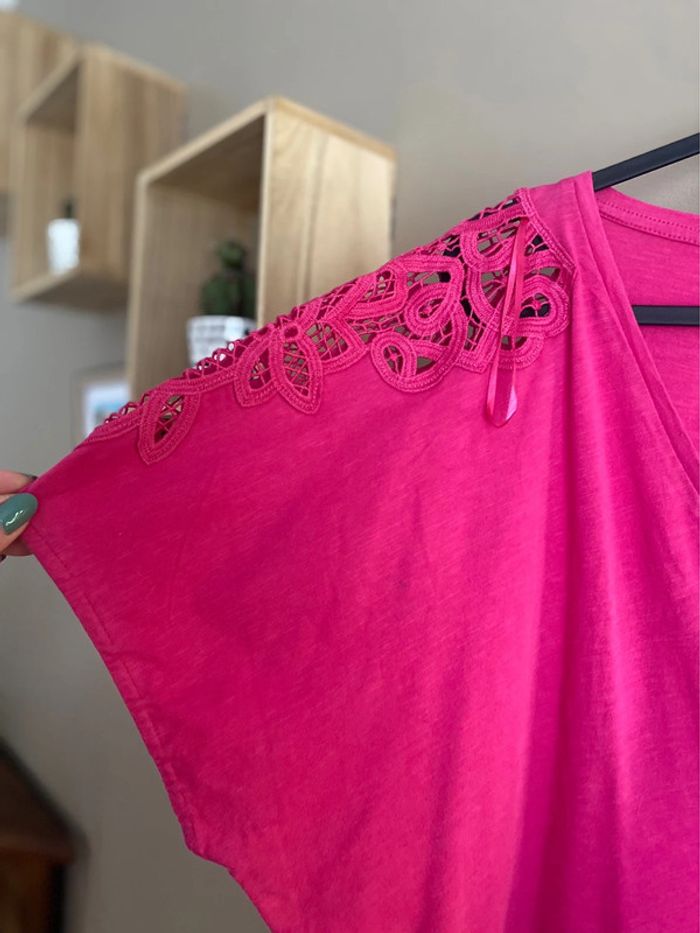 Top rose avec de la broderie sur les manches Porté 2 fois état impeccable Taille XL