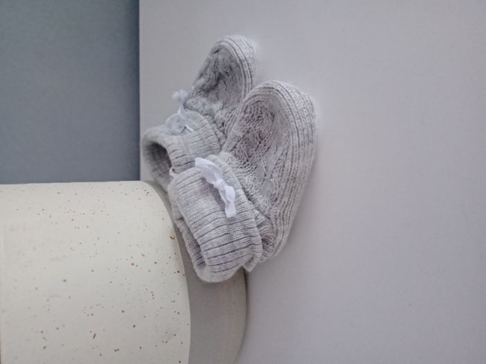 Jolie paire de chaussons de naissance gris - photo numéro 1