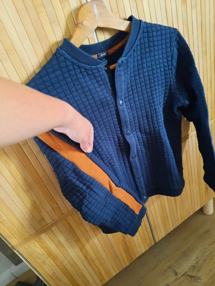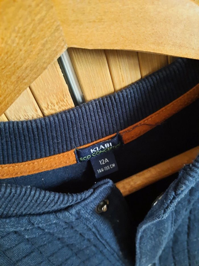Veste bleu marine et marron 12 ans, légèrement délavé sur le bleu marine Kiabi. #elomatgarcon12ans