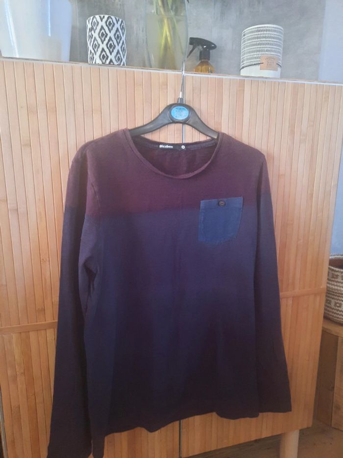T shirt manches longues Bizzbee taille M couleur bordeaux avec rayures bleu #elomatgarcon16ans