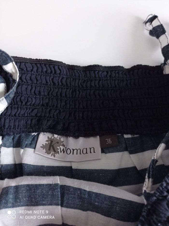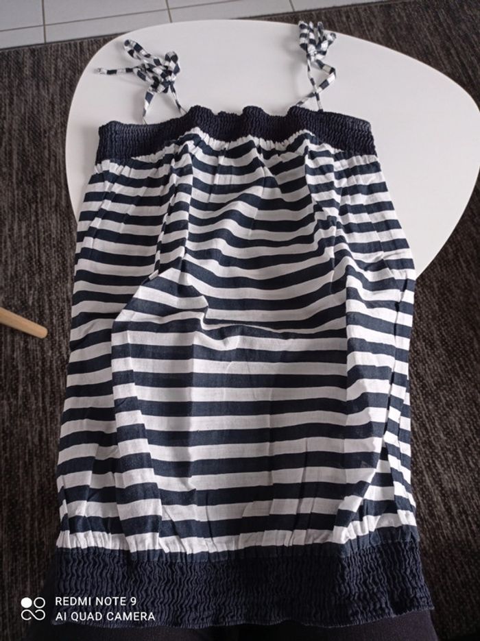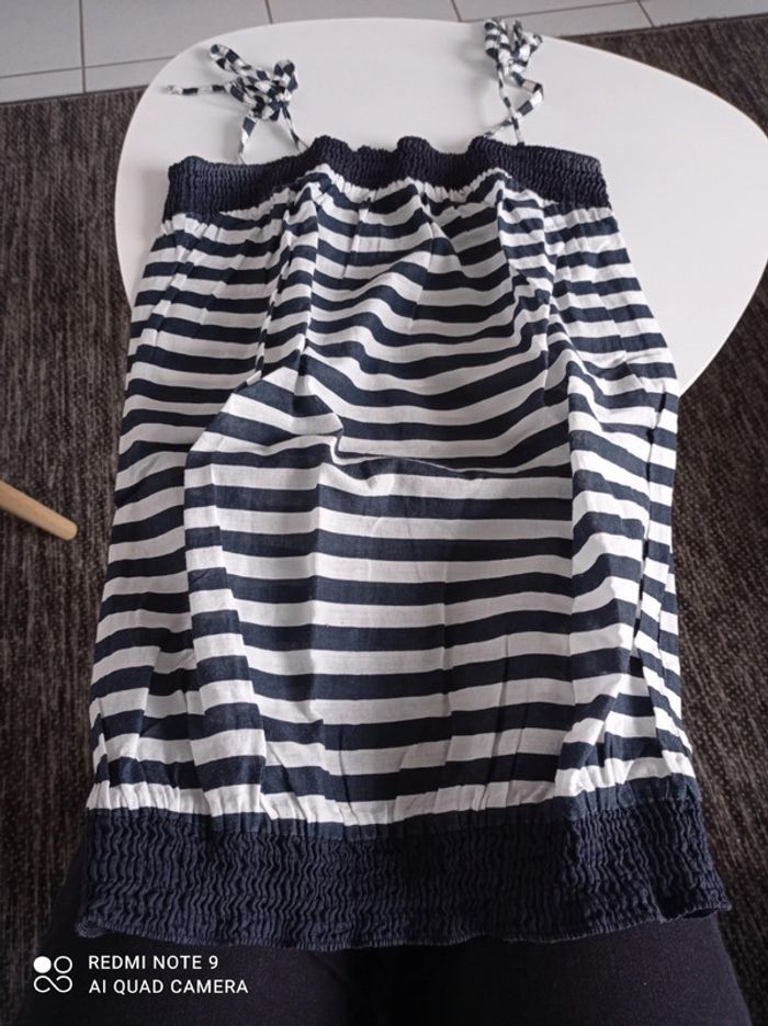 Haut femme a rayures. Réglable avec noeud sur épaule. Taille 36 #elomatfemme36