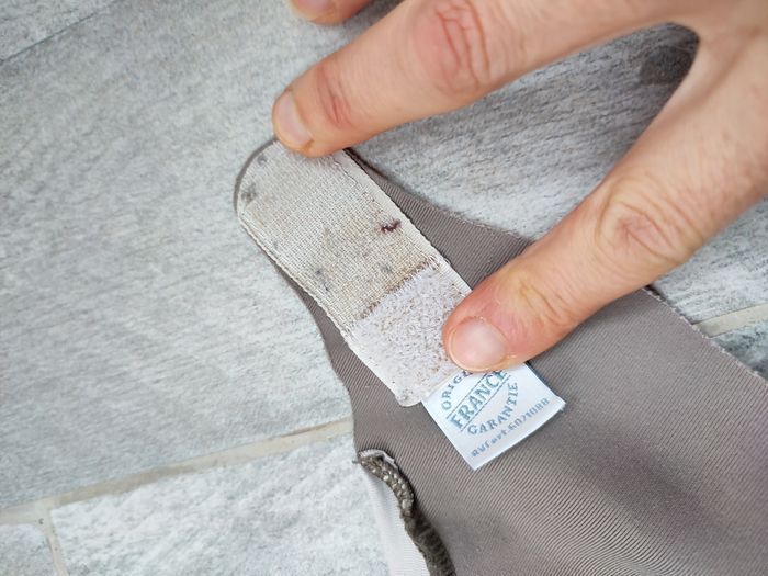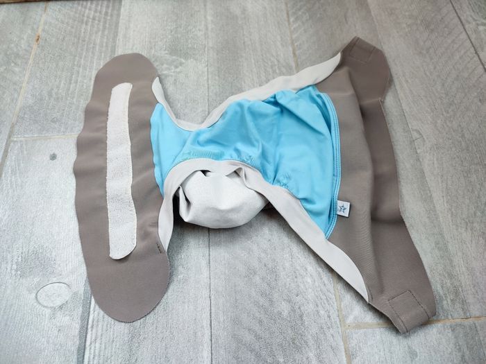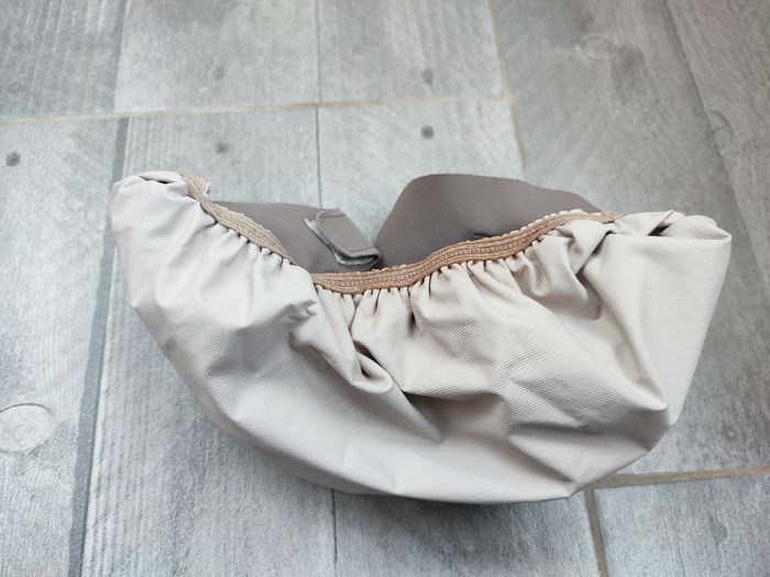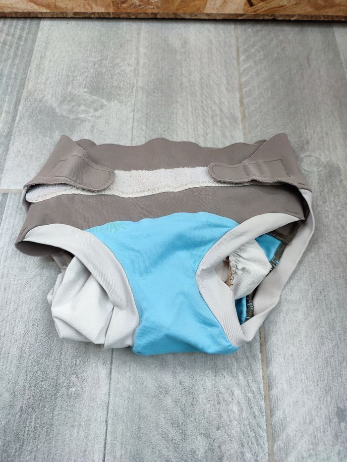 Couche lavable de marque Hamac en taille L. Scratchs OK mais légèrement ombrés. PUL toujours étanche. PUL et élastiques de la nacelle très légèrement ombrés. La couleur est passée, tissu légèrement bouloché. Routine de lavage : stockage à sec max 72h puis lavage à 40°C avec lessive Rainette aloe Vera.