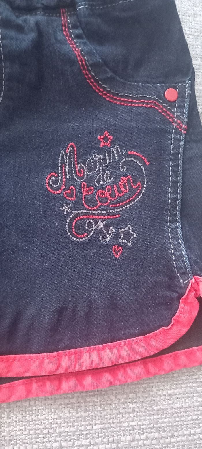 Jupe en jean bleu marine Couture rouge Taille ajustable Taille 3 ans
