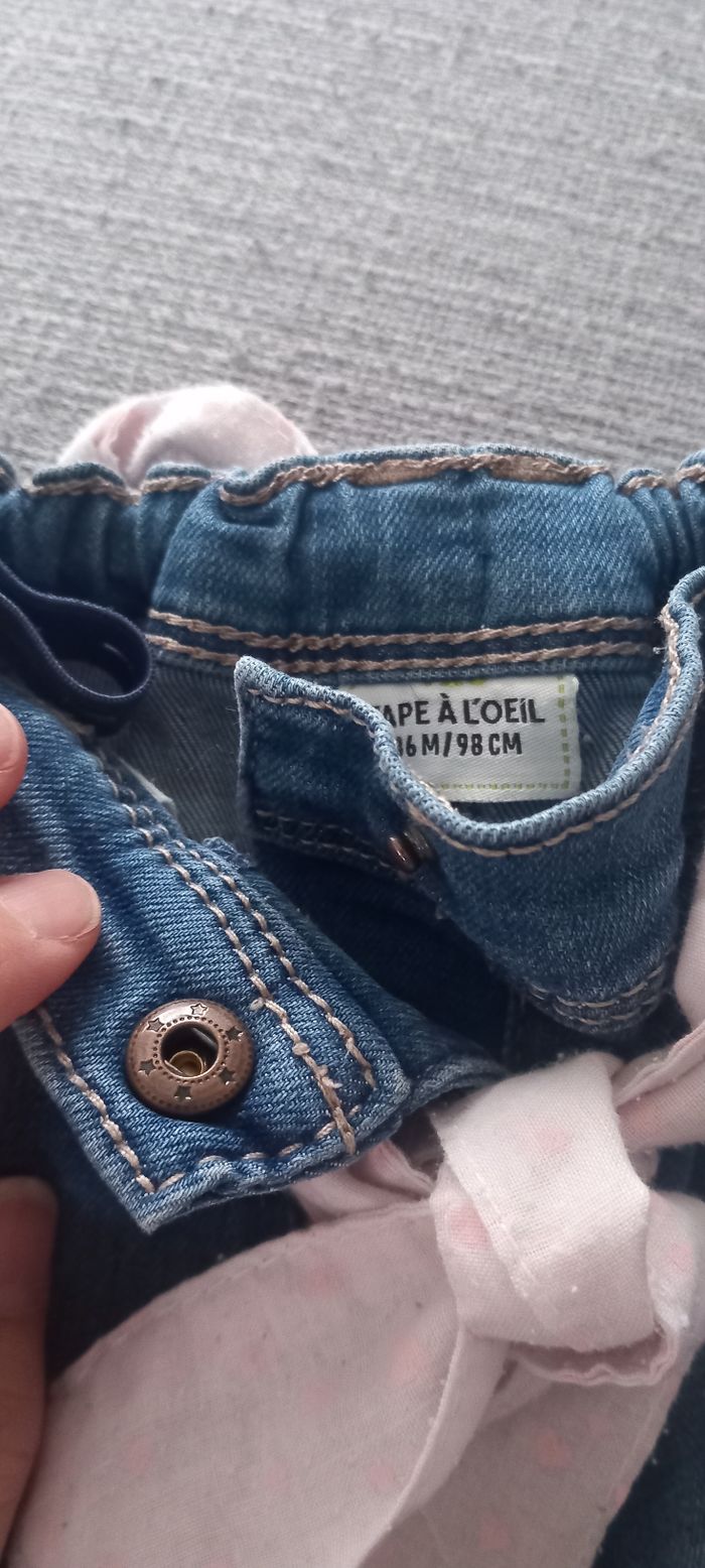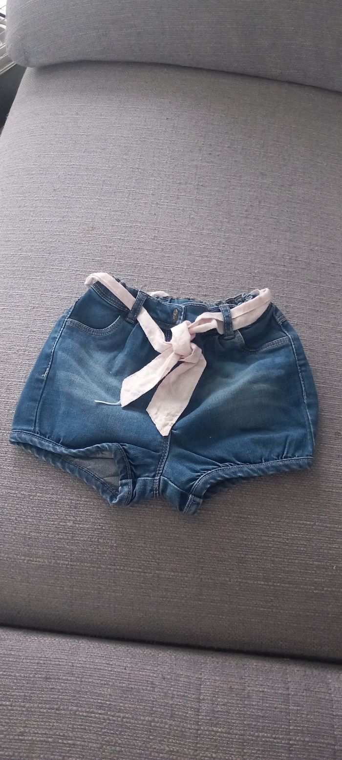 Short en jean bleu Avec ceinture rose avec des cœurs Taille ajustable Taille 36 mois