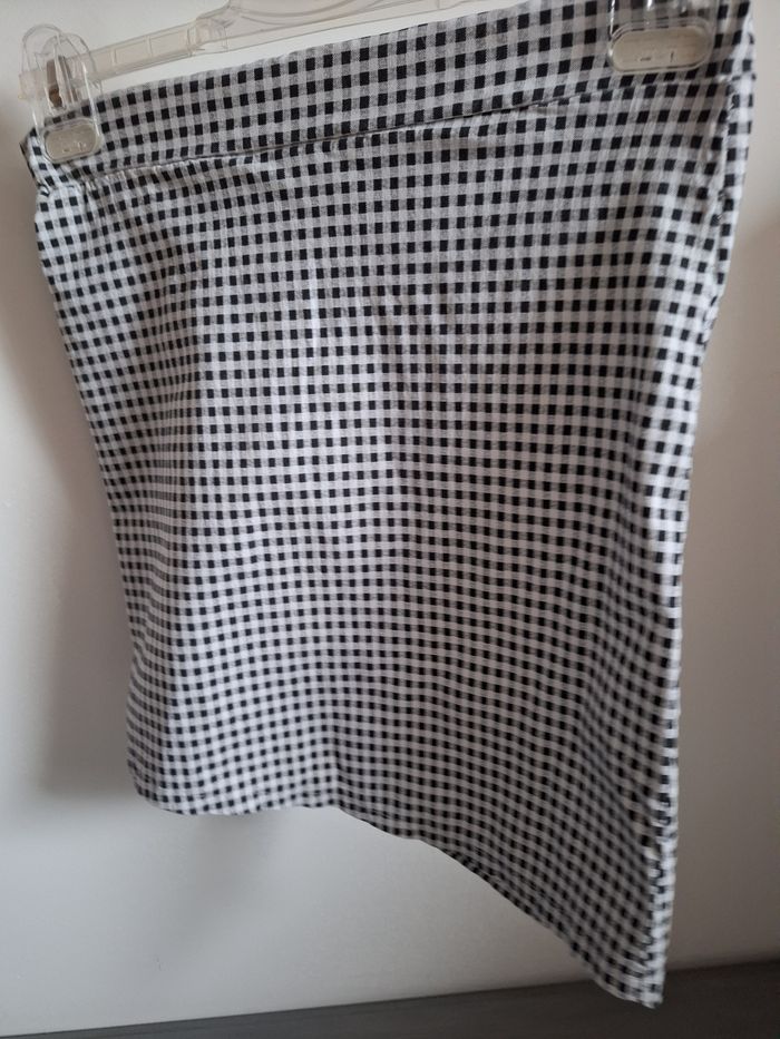 FEMME 34 / XS N°1282 jupe vichy Noir blanc Taille élastique 77% viscose 20% nylon 3% elasthane Longueur 48 cm Made in italy 3€ #kelly_femmeT34