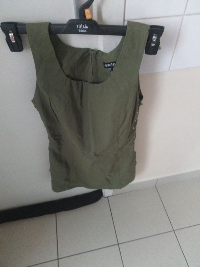 Tunique femme verte avec des lacets sur le côté