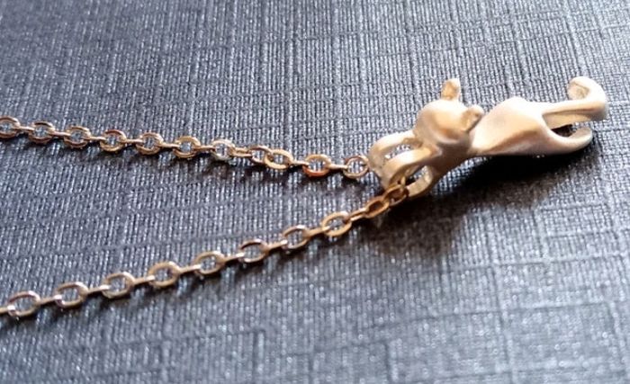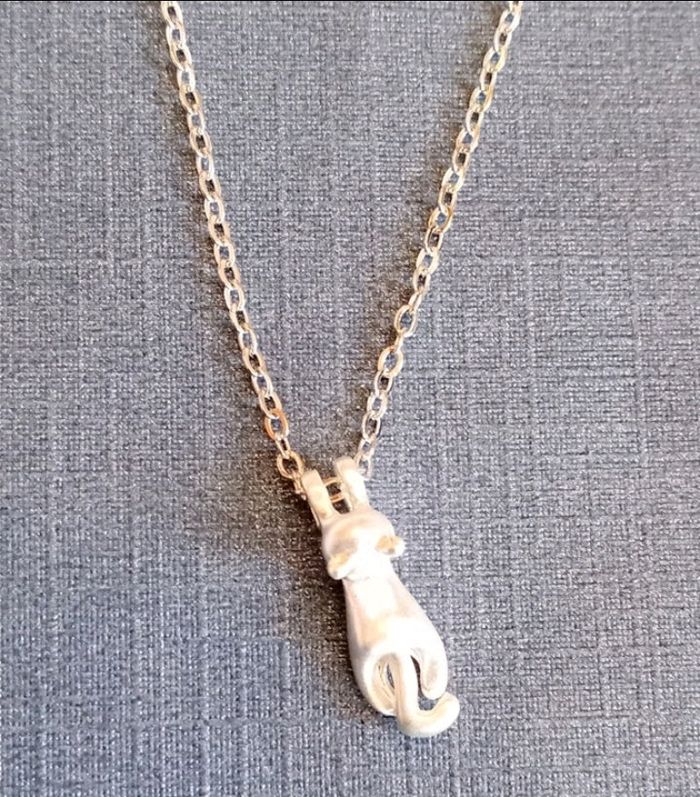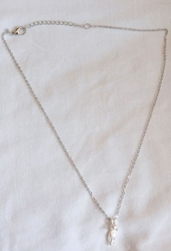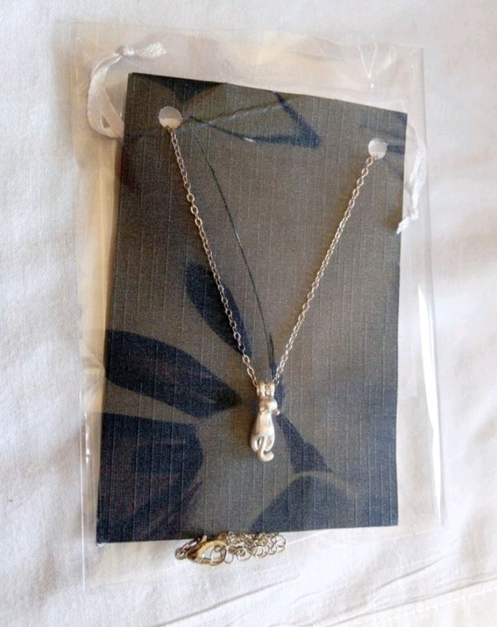 Chaîne argentée avec pendentif chat matte argenté. + Un pochon Bijou Neuf Joli cadeau pour une fille