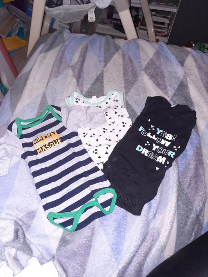 Lot de 3 bodies 2 manche courte pas de marque 1 manche longue en très bon etat enfant #marine_unmois_ethan