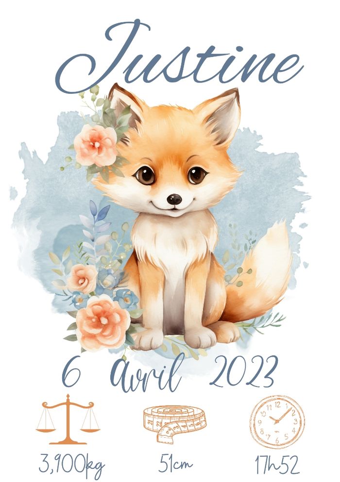 Idéale pour accrocher dans la chambre de bébé, ou comme cadeau de naissance ! ・Impression sur du papier 250g en format A4 (21x29.7cm) Une fois votre commande passé envoyer moi les détails par message Merci d’écrire précisément le prénom, la date, la taille, le poids et l’heure de naissance. ⚠ Aucune modification ne pourra être faite après l'impression Les couleurs peuvent être légèrement différentes du rendu photo. ©JgcreationsFR- tous droits réservés.