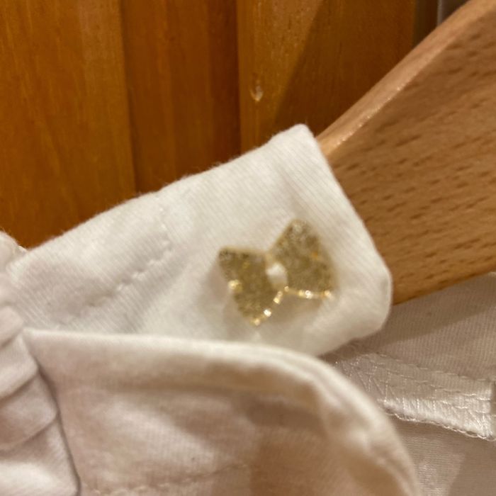 Très jolie t shirt manche courte avec papillons bouton coeur et noeuds à paillettes de chaque côté. Très. Bon état peu porté