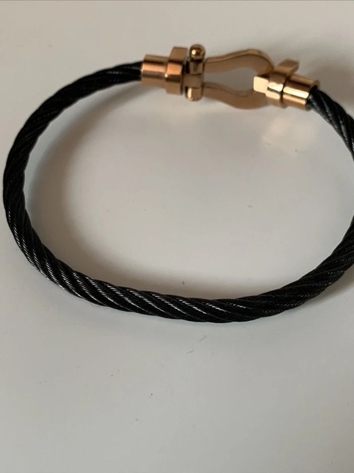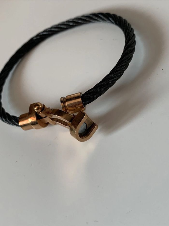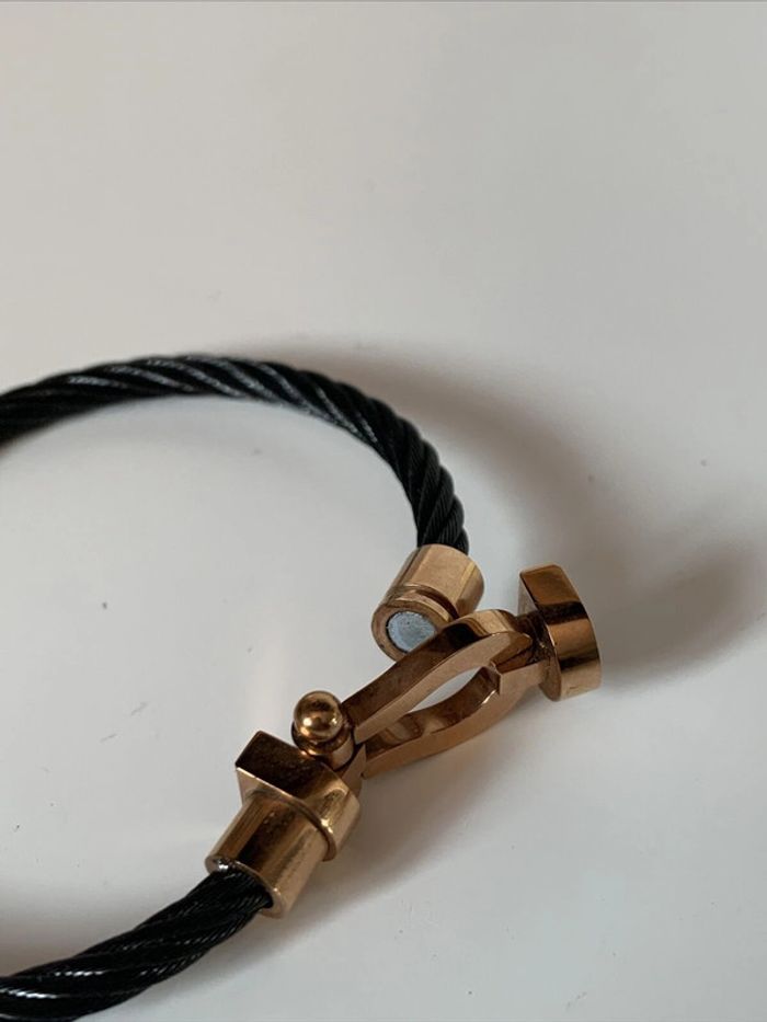 Bracelet fantaisie rigide noir et doré fermeture aimantée - photo numéro 7