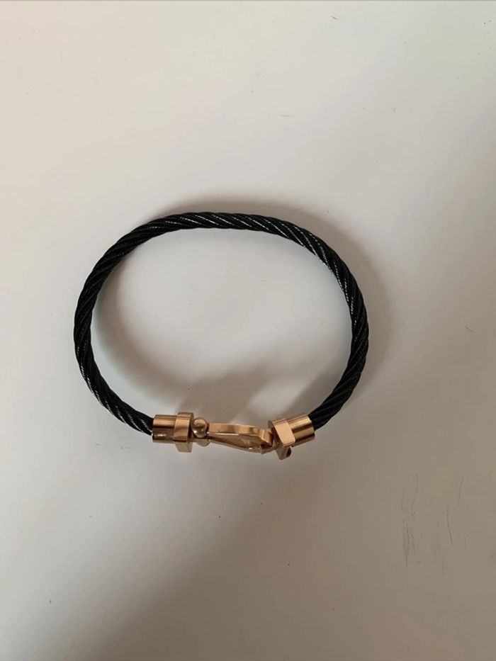 Bracelet fantaisie rigide noir et doré fermeture aimantée - photo numéro 1