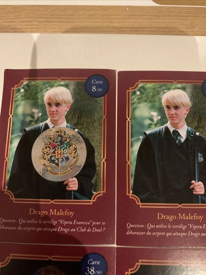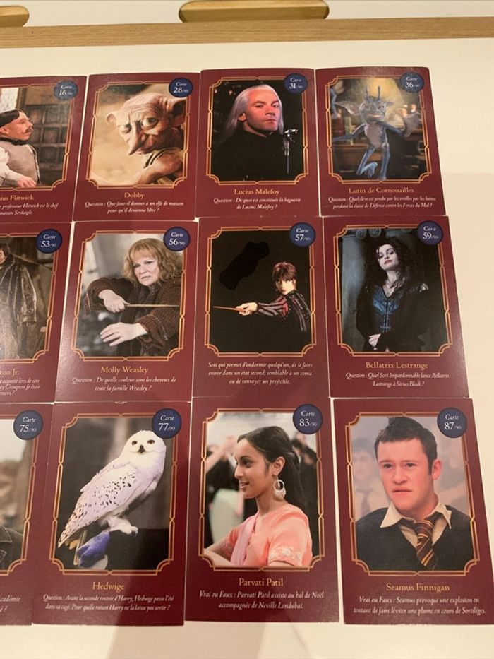 Lot 21 Cartes Harry Potter - 2021 - Auchan - WIZARDING WORLD 90 cartes de jeu à collectionner ! Un écusson spécial collé sur une carte (vignette collector argentée Draco Dormiens Nunquam Tittillandus) Liste cartes : N°8 (avec la vignette) 8 (vierge)-14-16-28-31-36-38-42-51-53-56-57-59-64-71-73-75-77-83-87