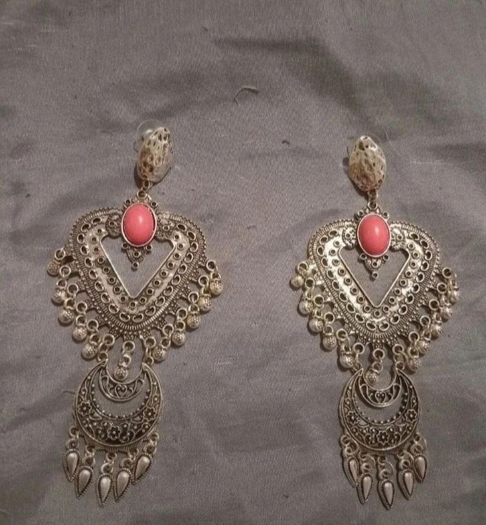 Vends paire de boucles d'oreille argentées et rose.