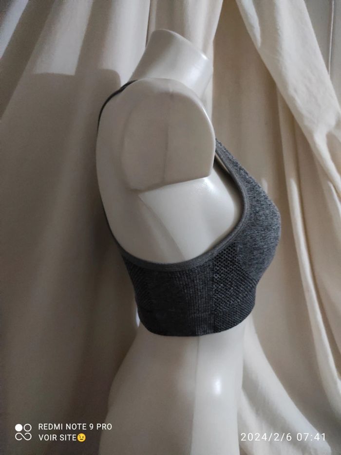 Brassière sport Femme Taille petit L correspond plutôt à un M 90% poliamide 10% elasthanne Couleur gris