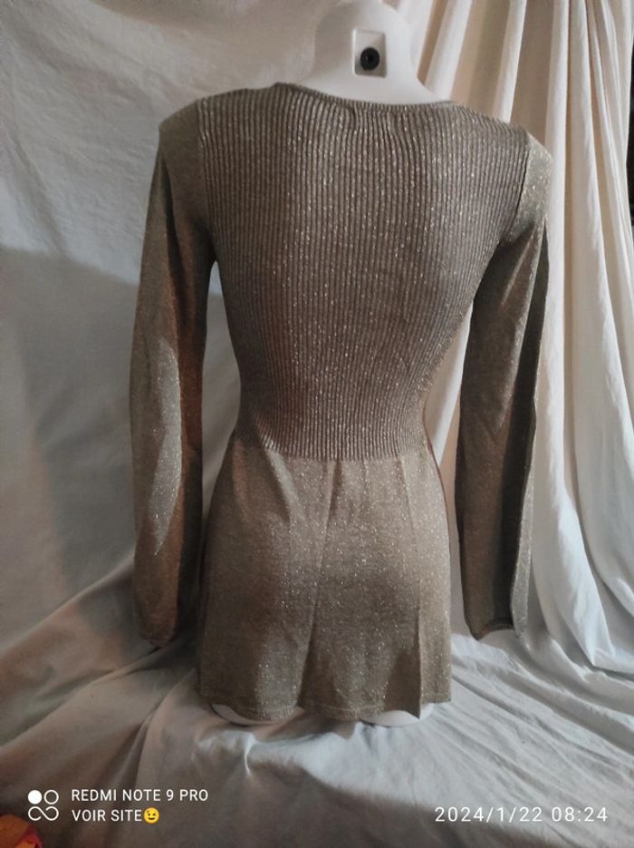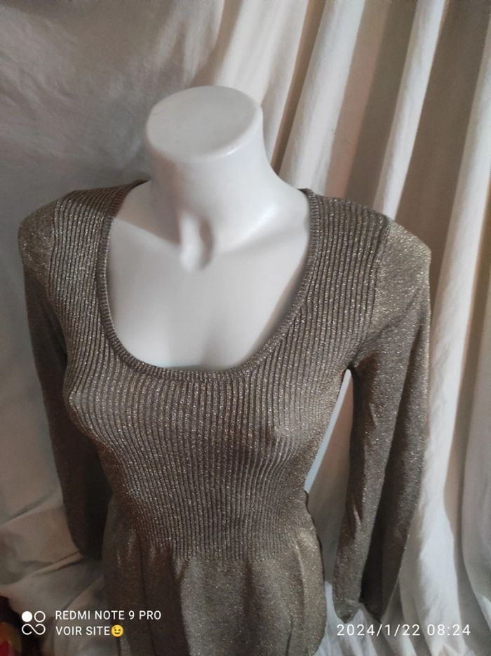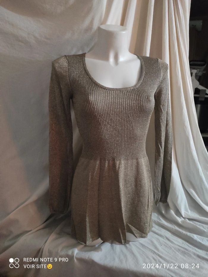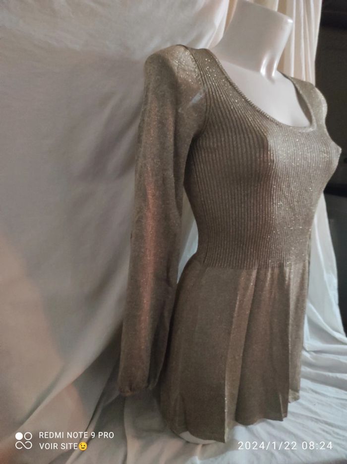 Robe courte Together Taille 40 80% viscose 20% lurex Couleur doré avec paillettes Longueur 70 cm
