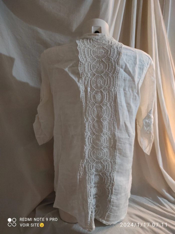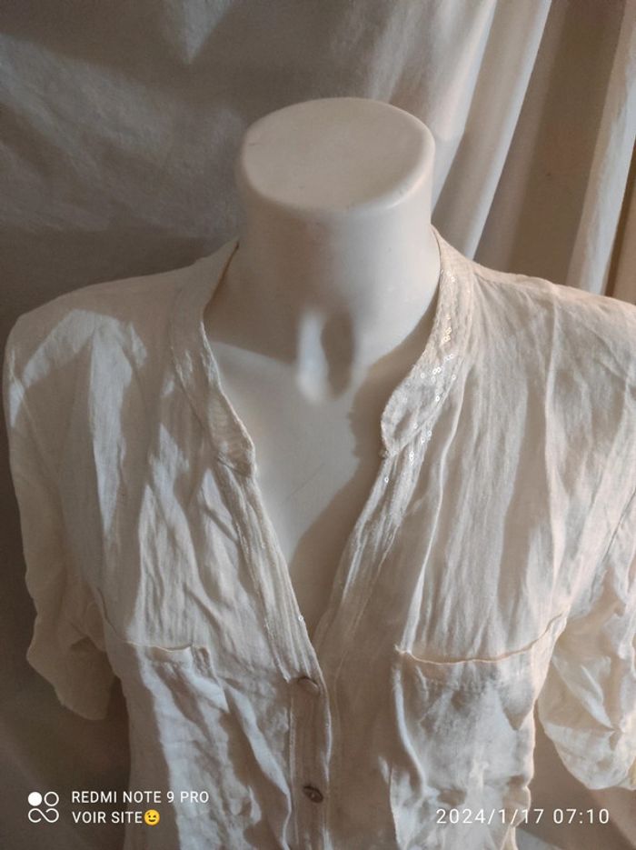 Chemise femme Made Italia Avec broderie Taille 40 100% lin Couleur crème Elle est magnifique juste pas repassé