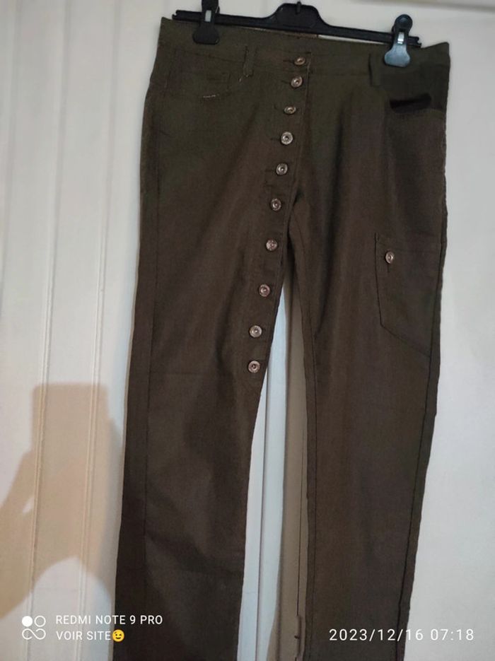 Pantalon Femme Taille L Couleur kaki 90% polyester 10% spandex