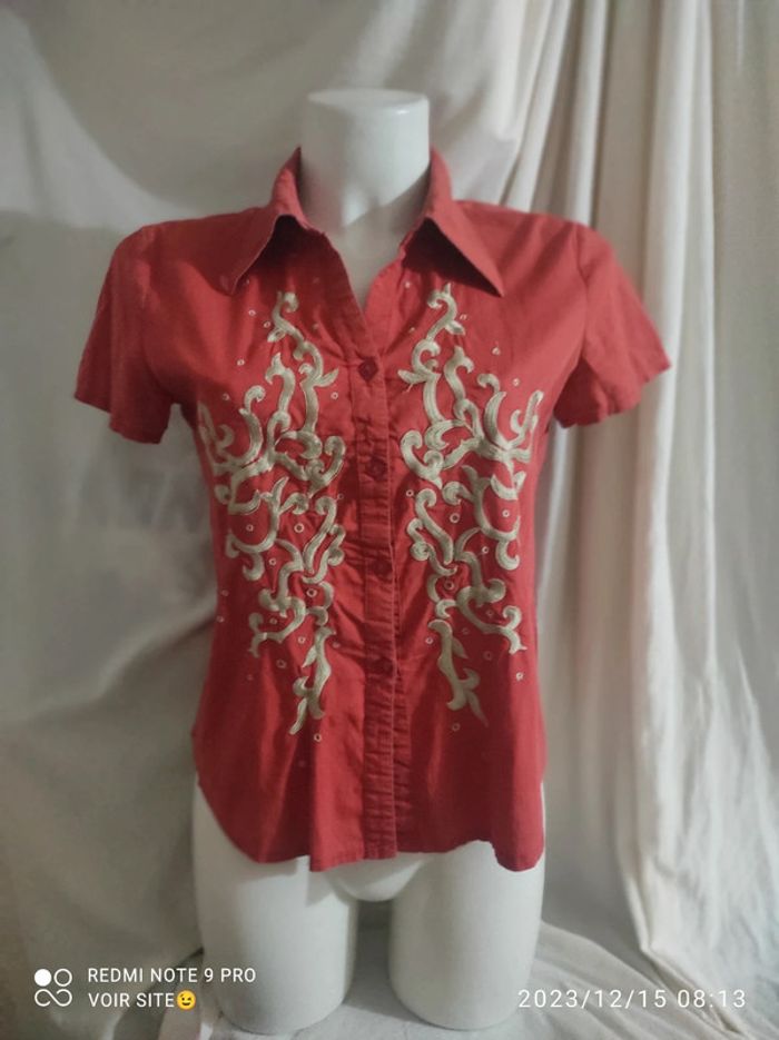Chemise Must Couture Manches courtes Taille M 95% coton 5% elasthanne Largeur épaule 39cm Longueur 54 cm