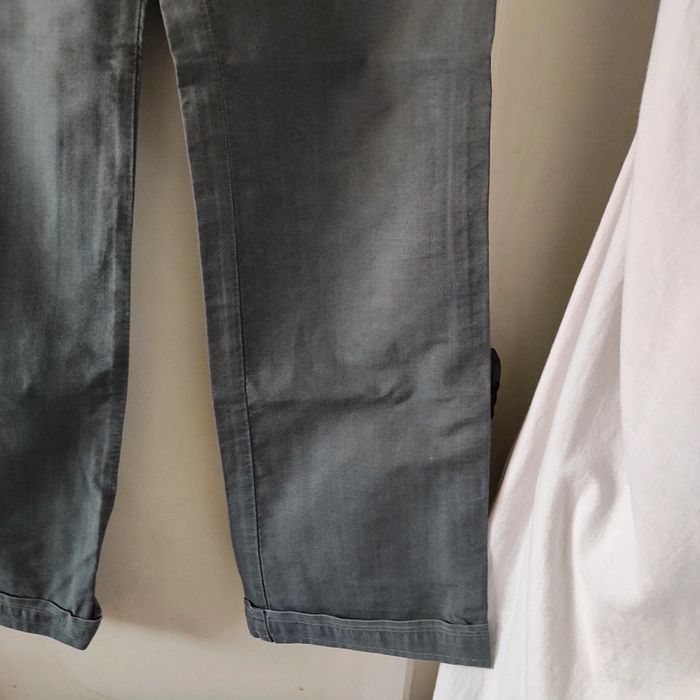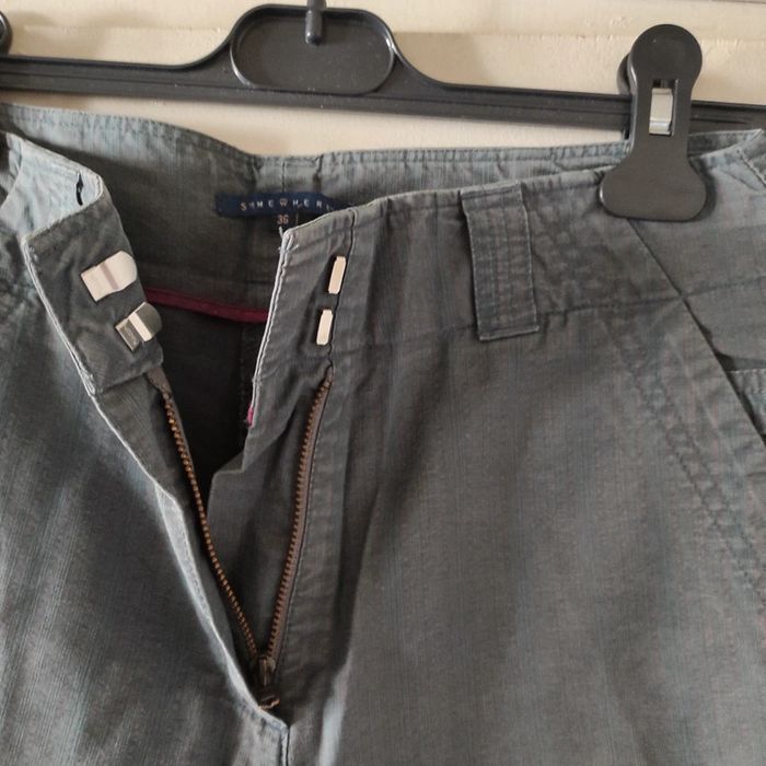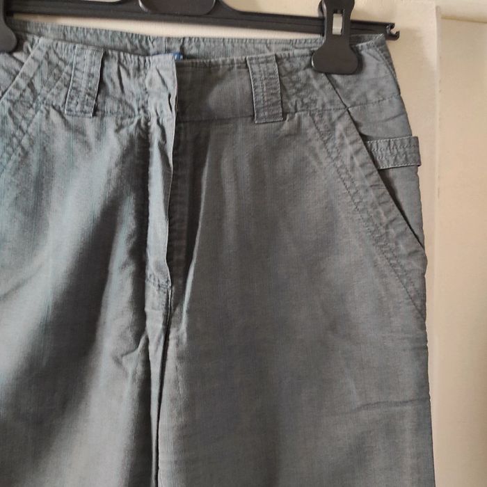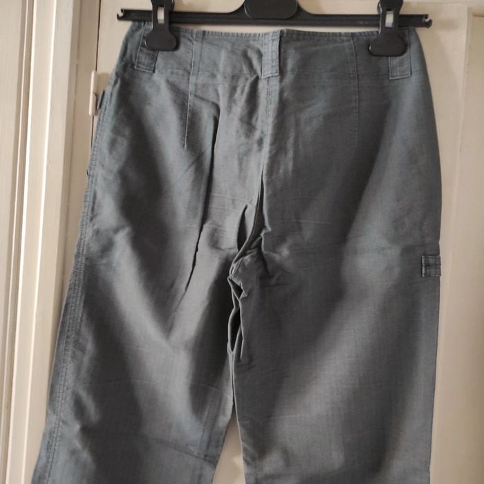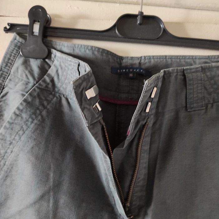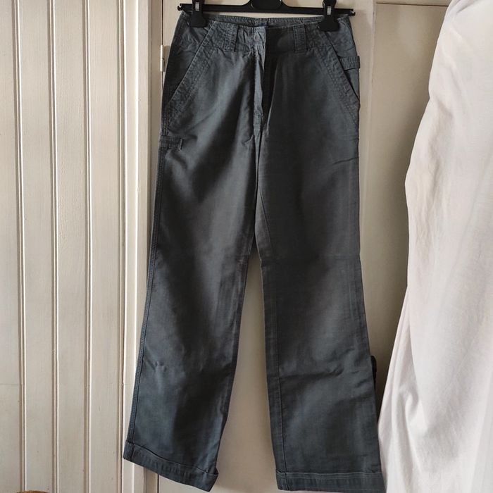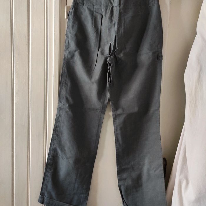 Pantalon Femme toile Somewhere Taille 36 Longueur 97 cm Couleurs vert gris avec des lignes rouges