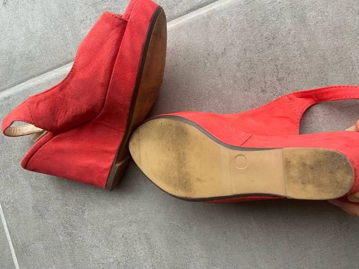 Compensées couleur corail Très peu portés Taille 36 Hauteur talons 10 cm Marque loreana