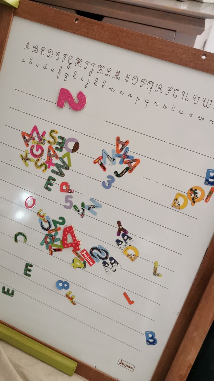 Tableau 1 face feutre et aimantée pour les lettres et 2 faces craies. À accrocher au mur