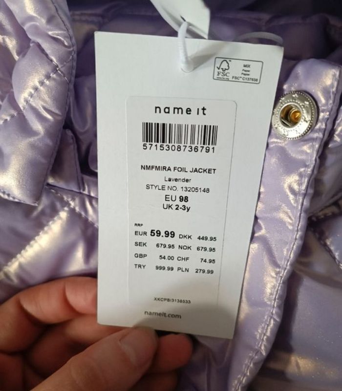 Doudoune brillante violette Name it neuve erreur de taille 2/3 ans