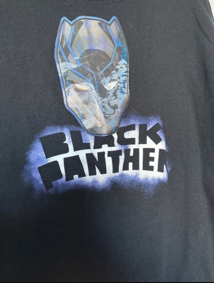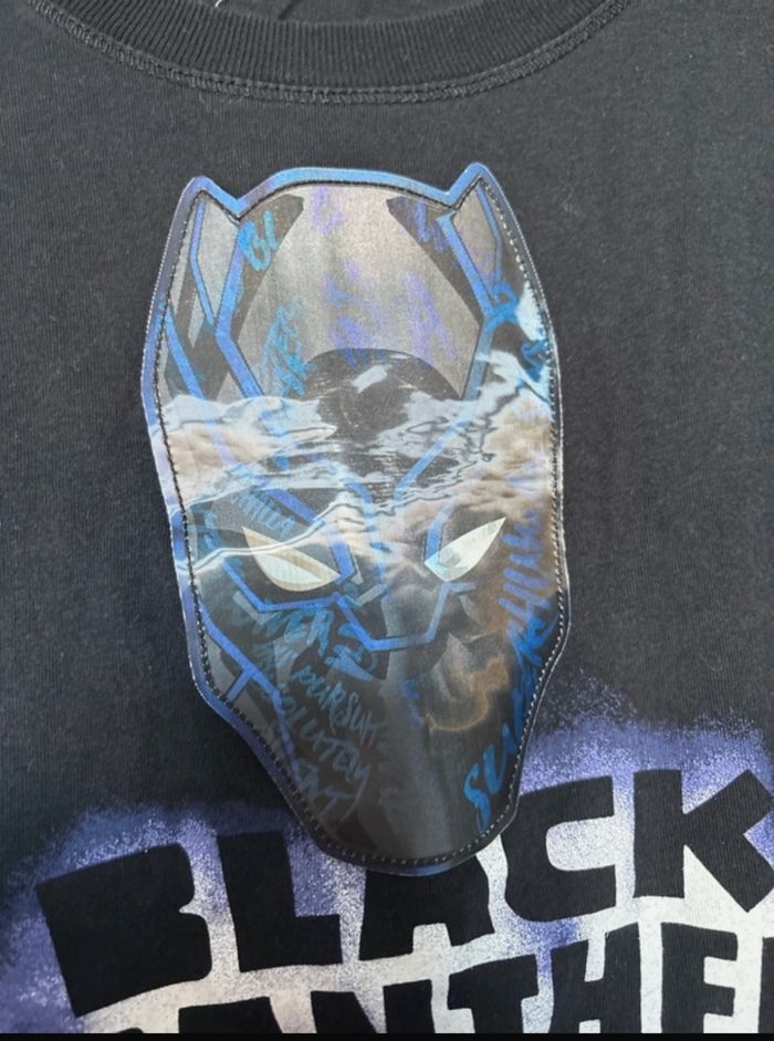 T shirt black Panther avec tête en relief Très bon état Taille 7ans