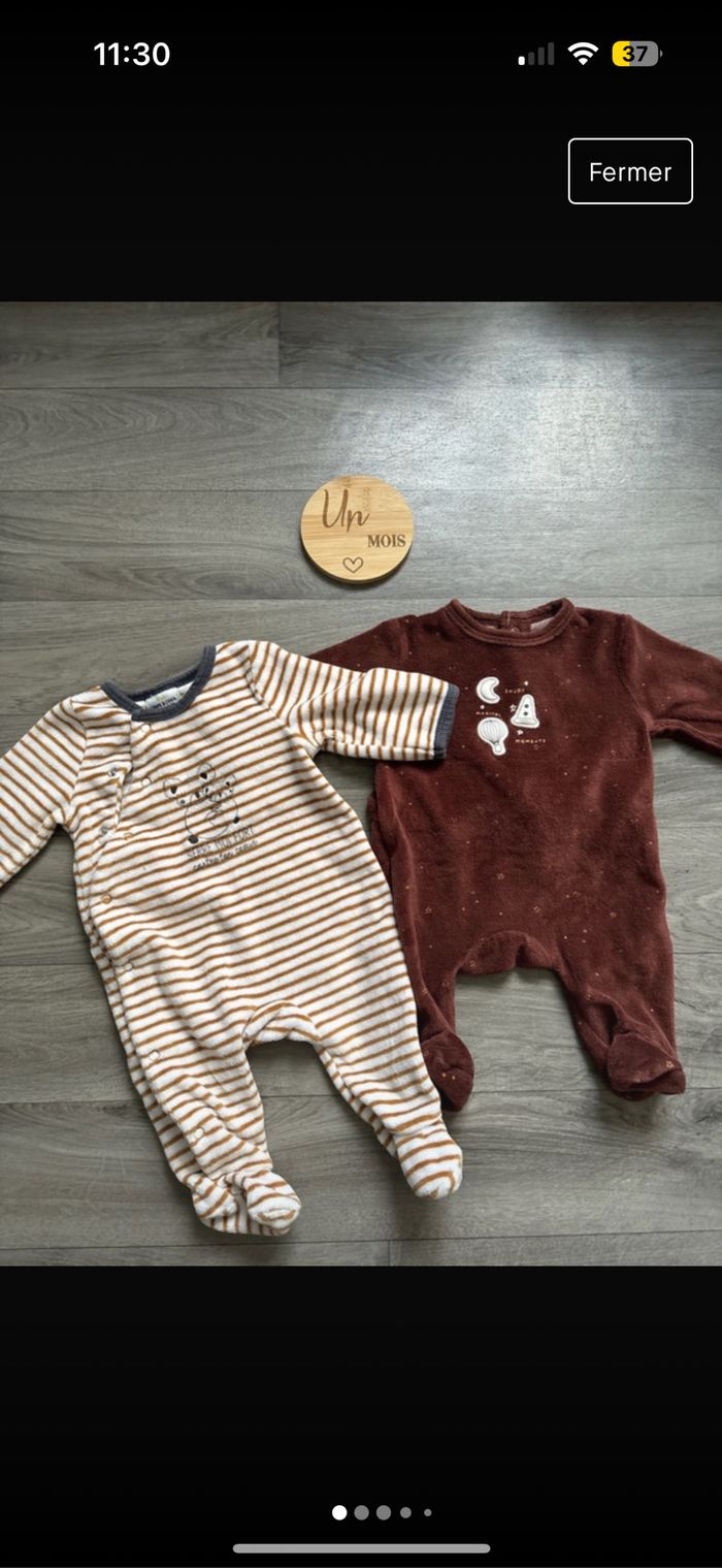 Lot de 2 pyjama Le raye tape à l’œil Le uni kiabi Taille 1 mois