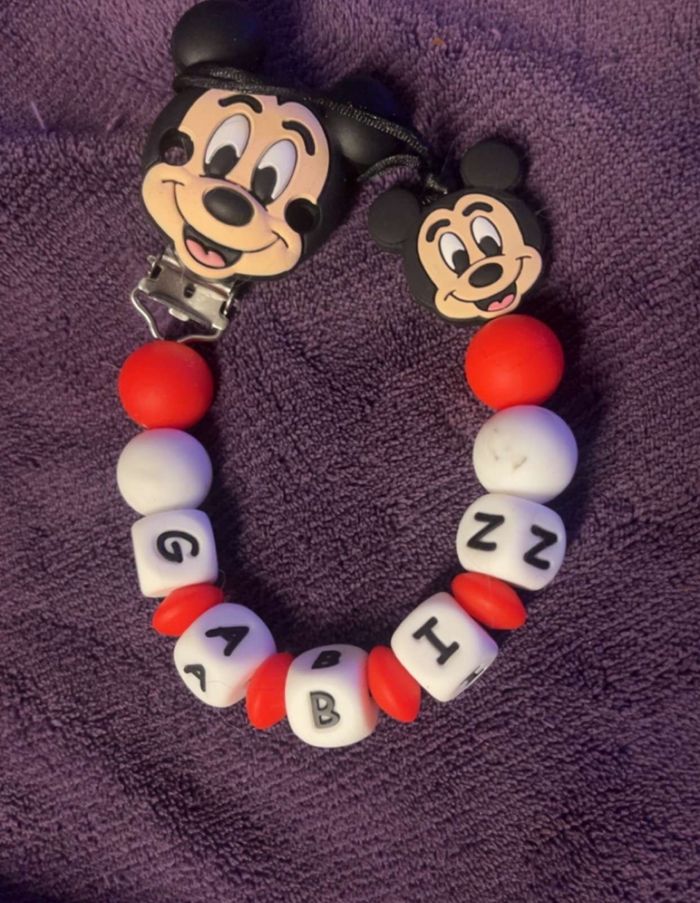 Attache tétine personnalisé en silicone ou en bois au souhait de l’acheteur . Personnalisable au choix de l’acheteur que ce soit la couleur comme le prénom ou le thème . Le fil est doublé pour plus de sécurité tout le long de l’attache tétine. N’hésitez pas à me demander et regarder mon dressing. Une photo vous sera envoyée avant l’expédition pour vous ayez un aperçu du rendu. Tous les produits sont réalisés avec du materiel spécial conçu aux bébés , enfants.