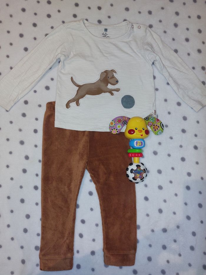 Ensemble hema 80 Pantalon marron Blouse beige avec chien