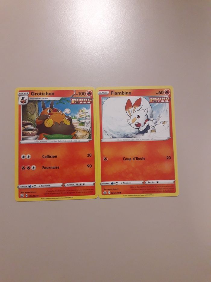 Grotichon + Flambino lot de 2 cartes Pokémon neuves