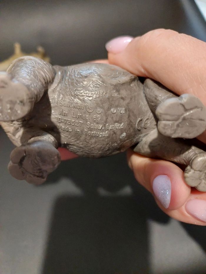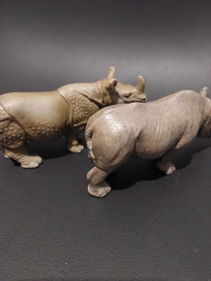 Bonjour Je vends ce lot de 2 figurines Rhinocéros Marque schleich Bon état 14 cms de longueur 6 cms Hauteur