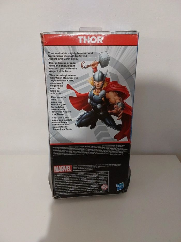 Bonjour Je vends cette figurine marvel De marque Hasbro Figurine Thor Neuve Jamais servie Boîte abîmée mais pas la figurine Des 4 ans