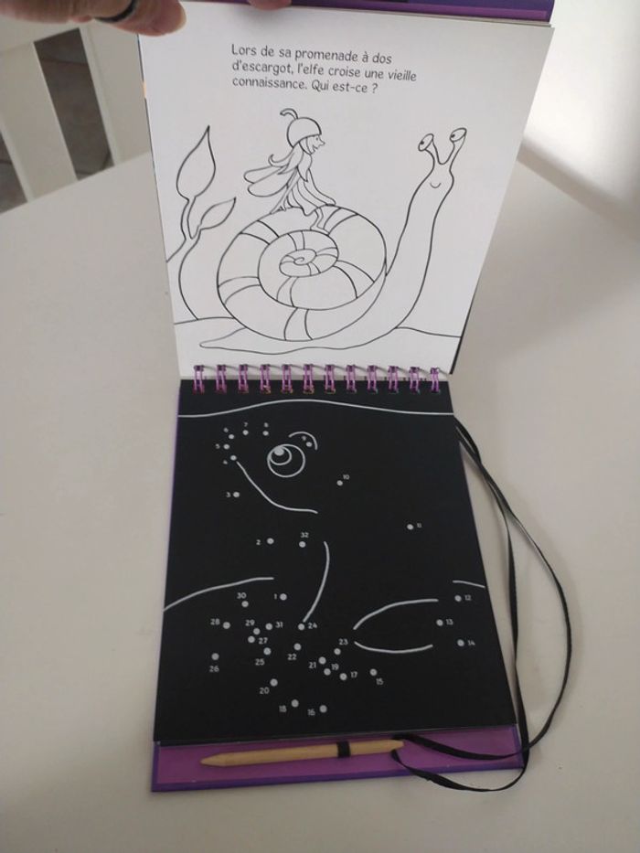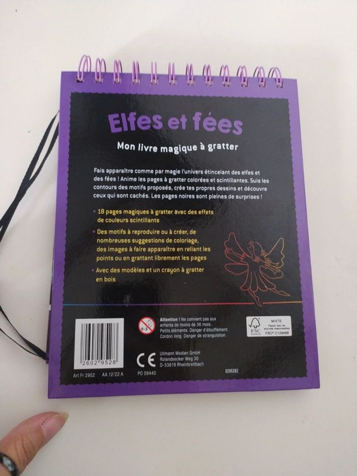 Bonjour Je vends ce livre magique à gratter Elfes et fées Jamais utiliser Avec son petit crayon ✏️ Très bon état Des 3 ans