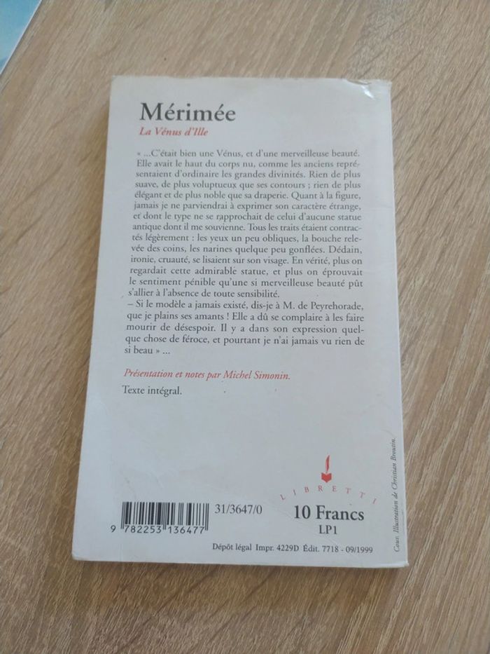 Bonjour Je vends ce livre Mérimée La Vénus d Ille De livre de poche Bon état Profitez je fais une remise a partir de 2 articles achetés qui sera effectué lors du paiement