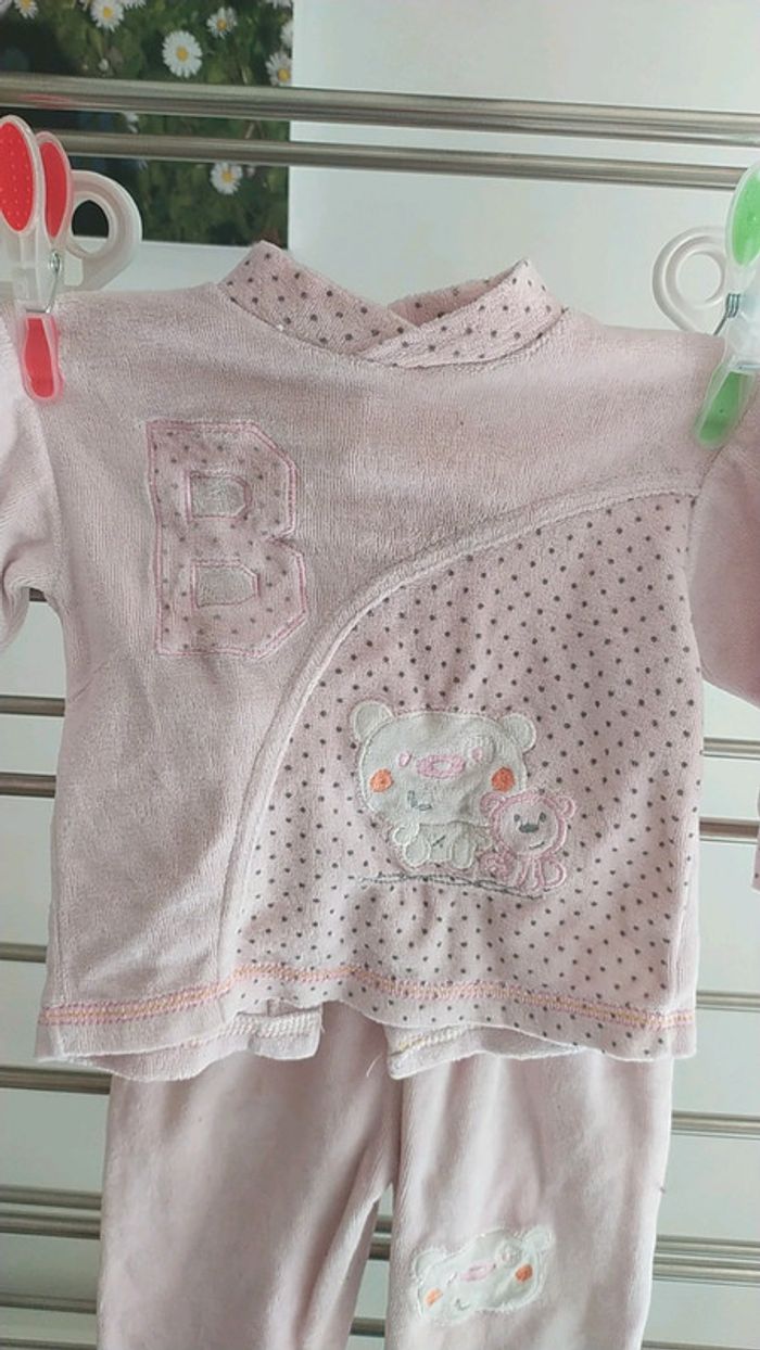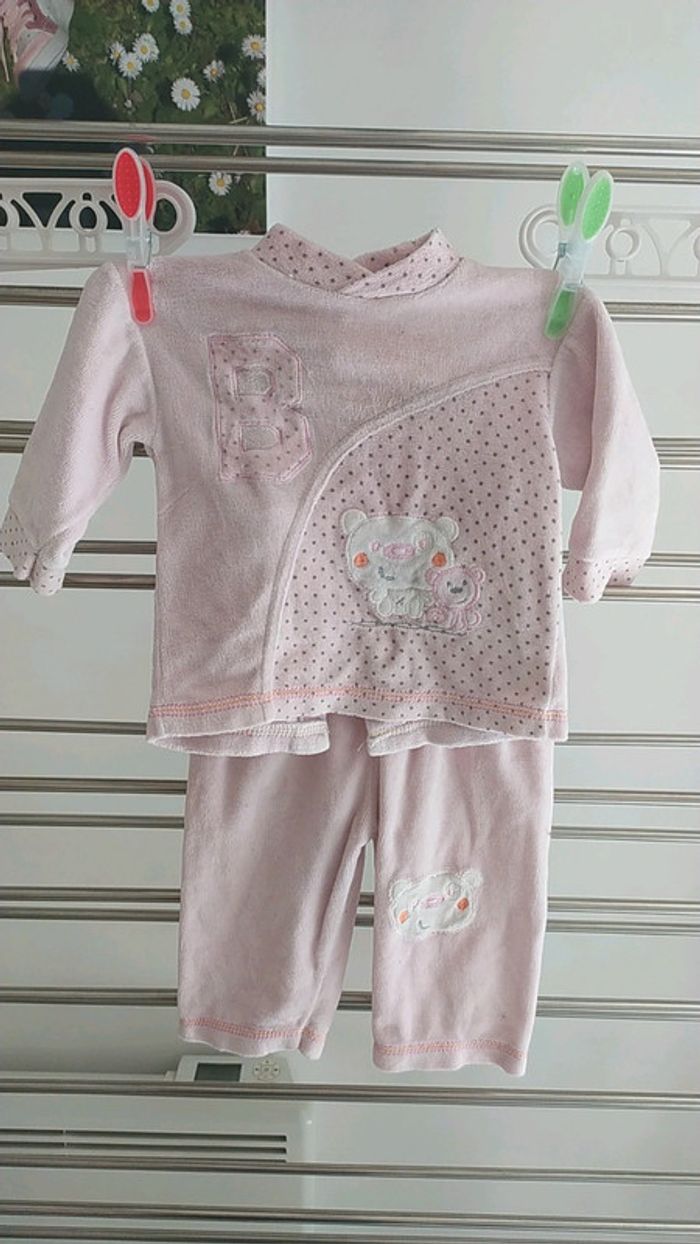 Bonjour Je vends ce pyjama 2 pièces pour bébé fille Taille 3 mois Bon état Petit haut qui s attaché dans le dos Et son pantalon assorti Profitez je fais une remise a partir de 2 articles achetés qui sera effectué lors du paiement