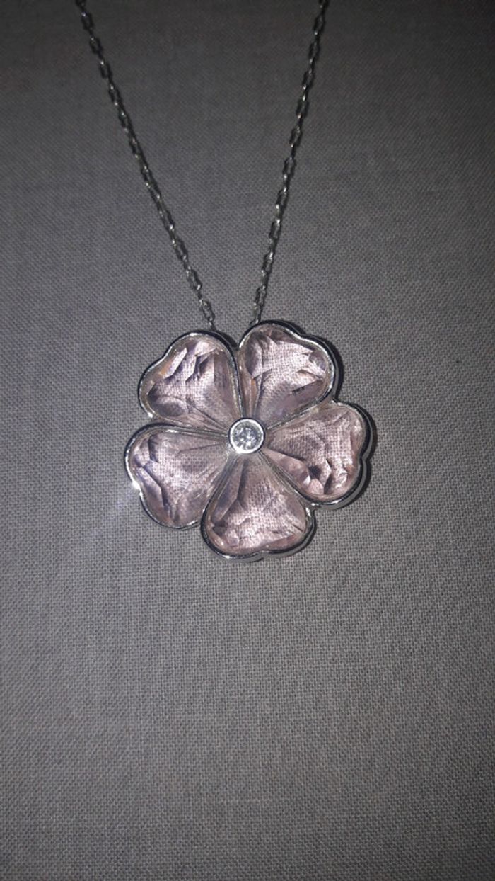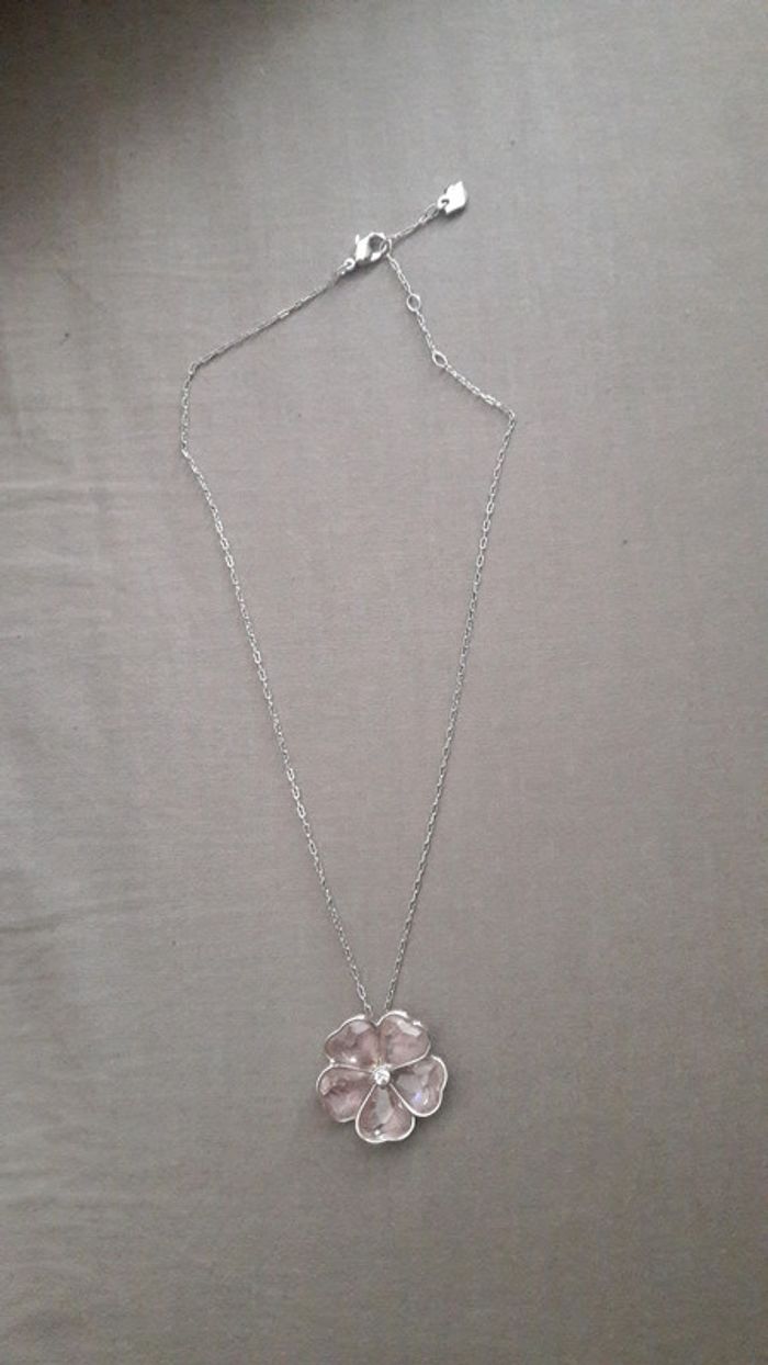 bonjour je vends un collier avec son pendentif de marque swarowski comme neuf porter 2 fois de couleur rose transparent je fais une remise à partir de 2 articles achetés qui sera effectuer lors du paiement