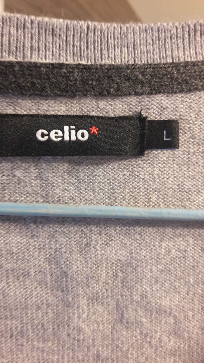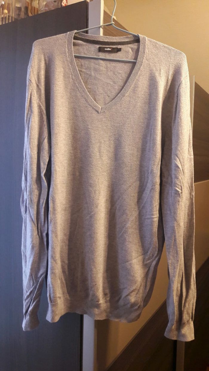 bonjour je vends un pull homme de marque Celio de couleur gris clair avec un rond gris foncé au niveau de coudes porter 1 fois comme neuf taille L je fais une remise à partir de 2 articles achetés qui sera effectuée lors du paiement