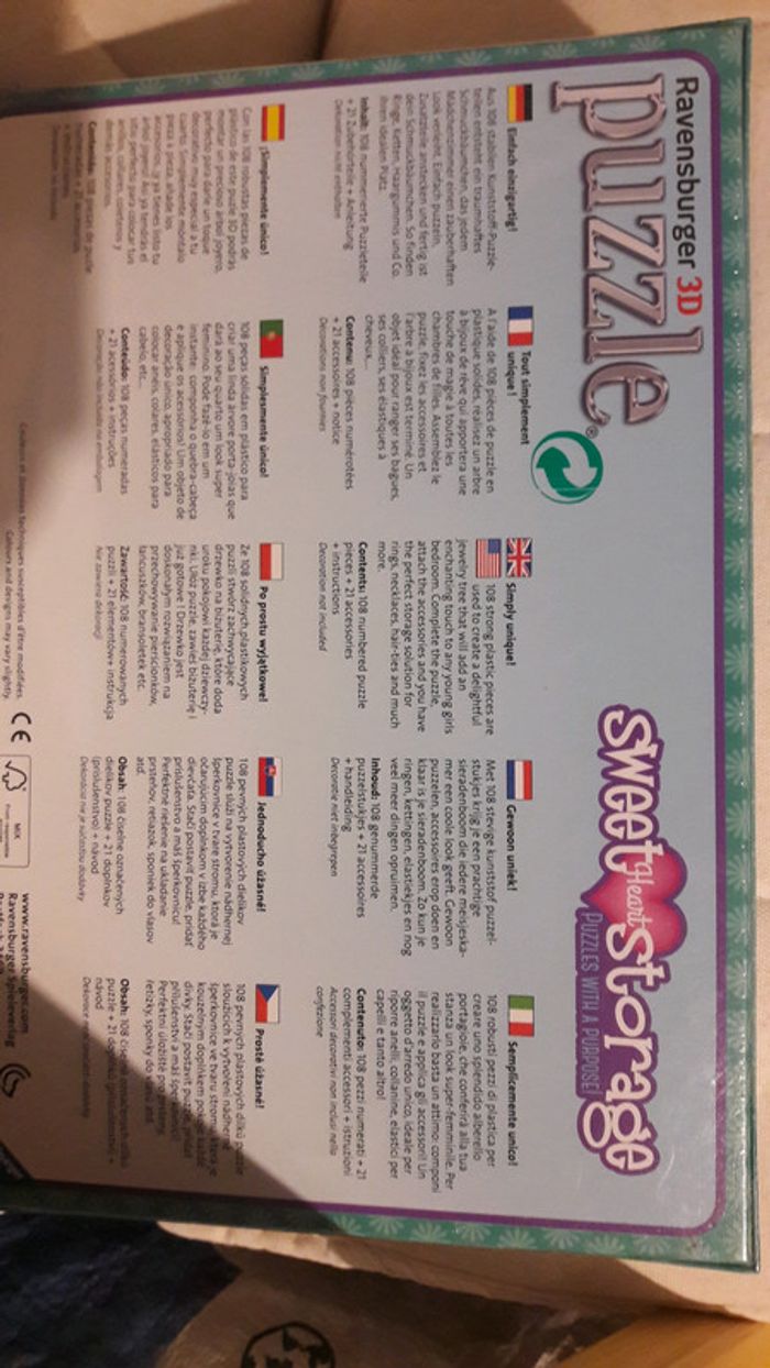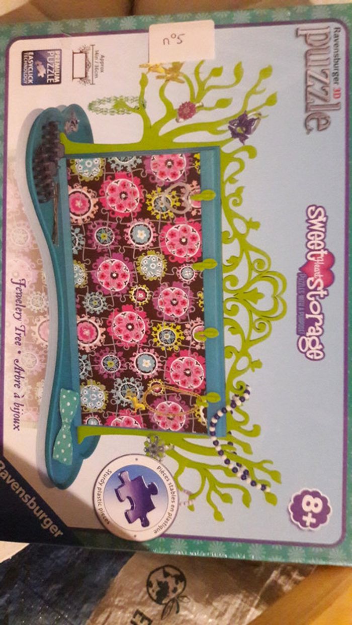 bonjour je vends un puzzle 3D Sweet Heart Storage de marque Ravensburger neuf sous blister pour créer son arbre à bijoux 36 cms de long 108 pièces je fais une remise à partir de 2 articles achetés qui sera effectuée lors du paiement