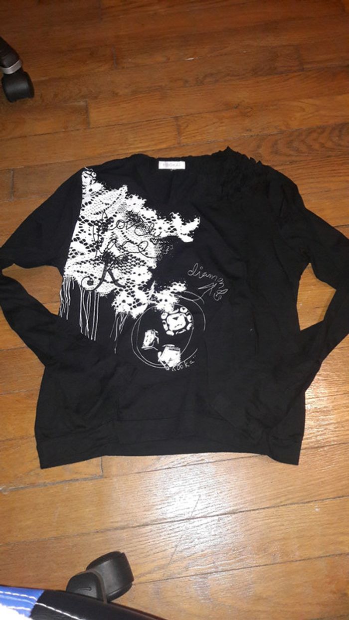 bonjour je vends un haut femme manches longues de marque Kookai avec motifs sur le devant taille 38 je fais une remise à partir de 2 articles achetés qui sera effectuée lors du paiement
