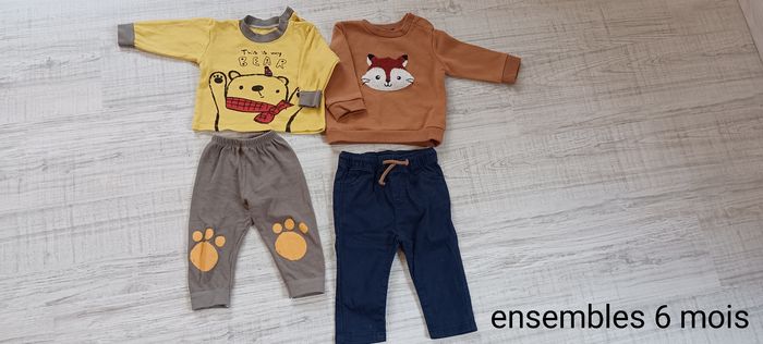 Bonjour je vend plusieurs vêtements en taille 6 mois , pas mal de choix hiver et quelque un en été. Des ensembles hiver aussi au choix Tout et en très bonne état.