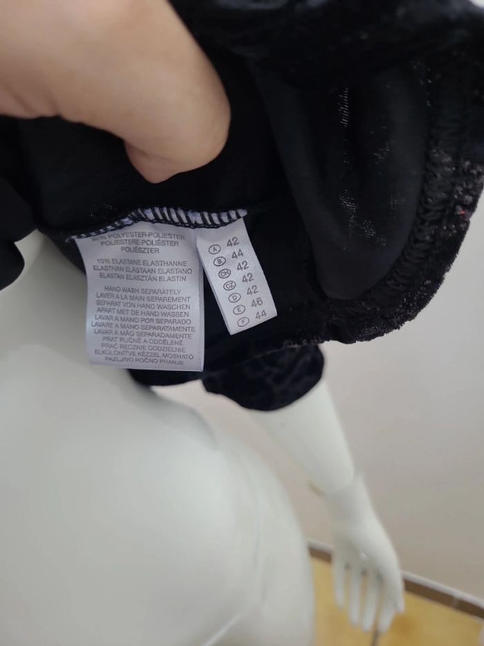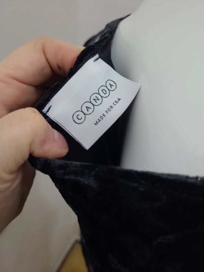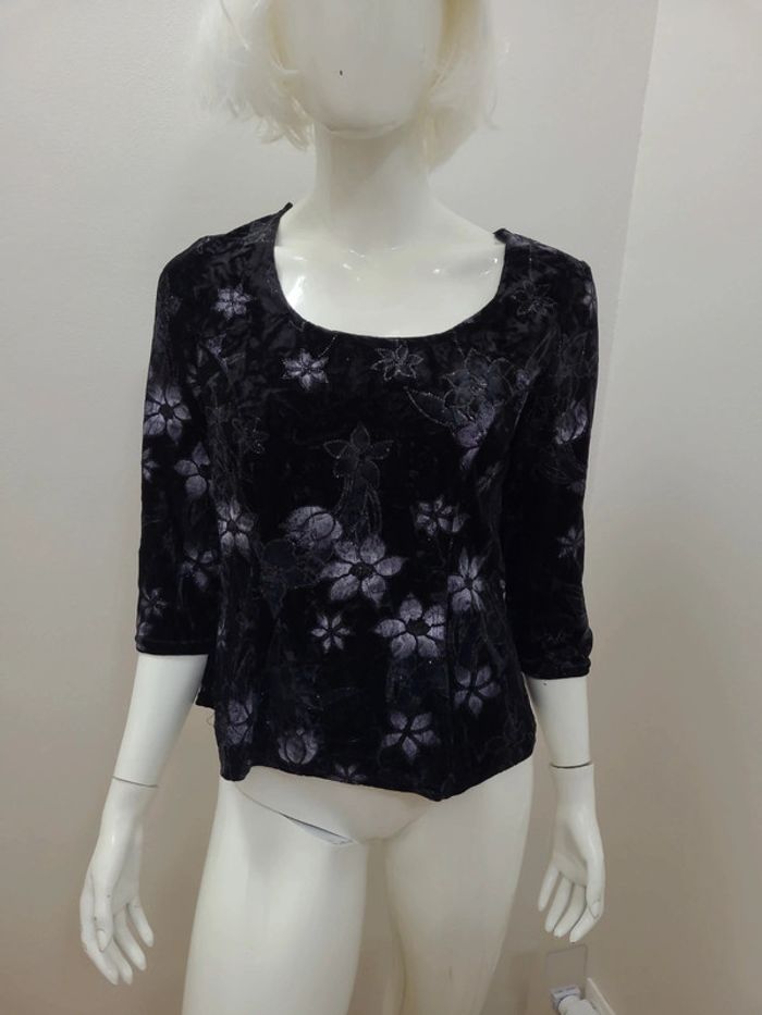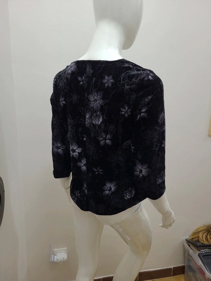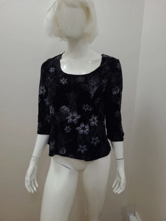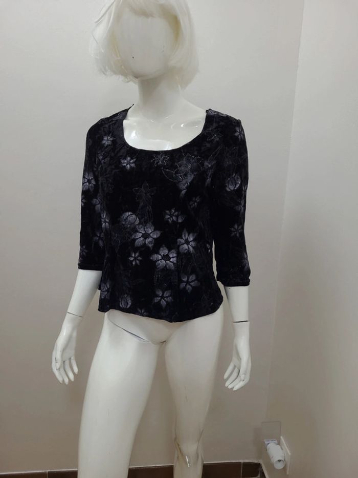 T shirt velour noir avec Strass taille XL /44 mais mon manequin fait du 42. Taille petit. Manche 3/4.