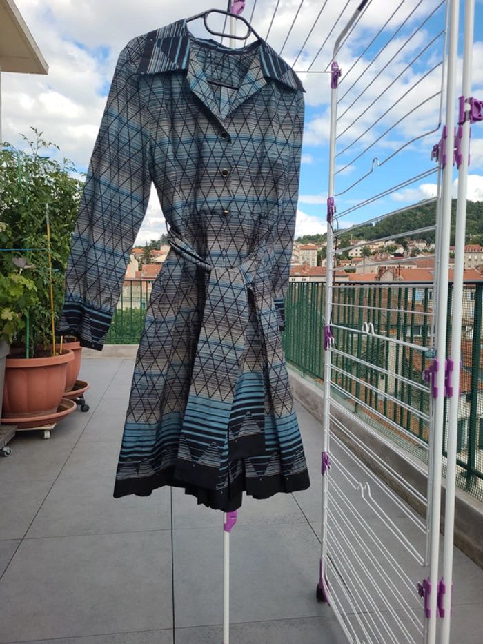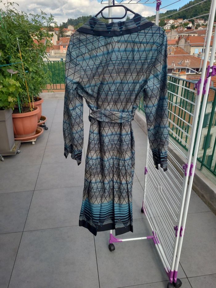 Belle robe au style vintage avec sa ceinture, plus d etiquette, taille (L/XL) bien vérifié avec les dimensions : Dimensions : 110 cm hauteur 40 cm taille 50 cm poitrine Envoi rapide et soigné. Caisse C2