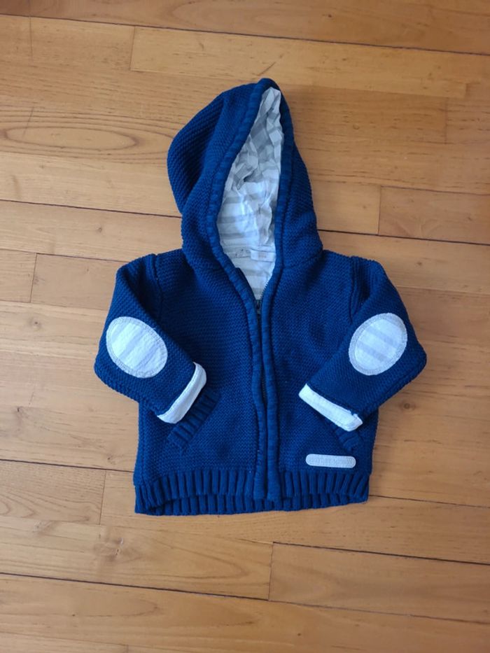 Gilet chaud, interieur coton, couleur bleu marine, marque baby by gemo, taille 9 mois (Caisse grise 4)
