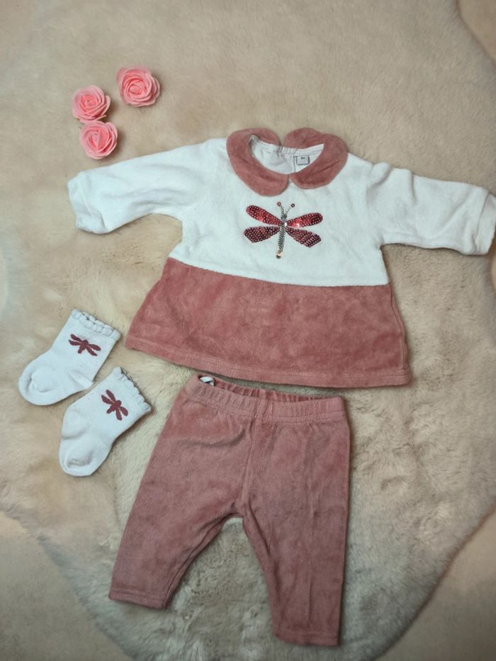 Ensemble hiver haut pantalon chaussettes 1 mois #ensemblebebefille1mois #ensemblehiverbebe1mois