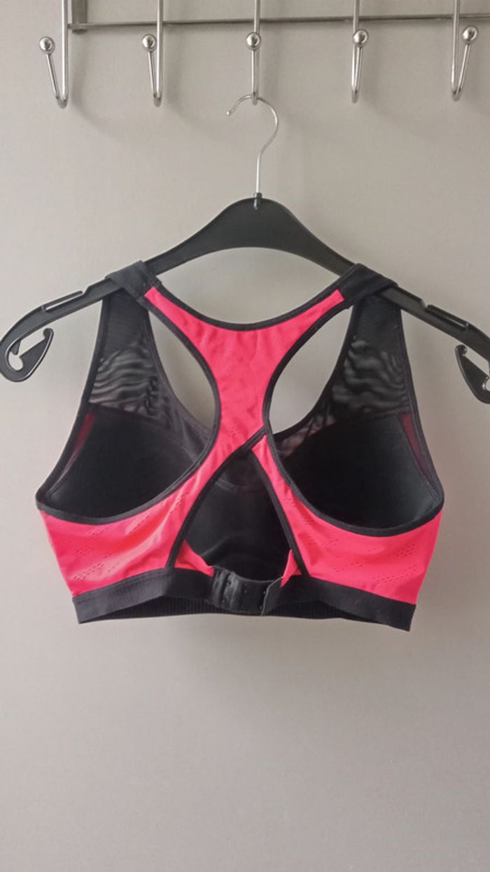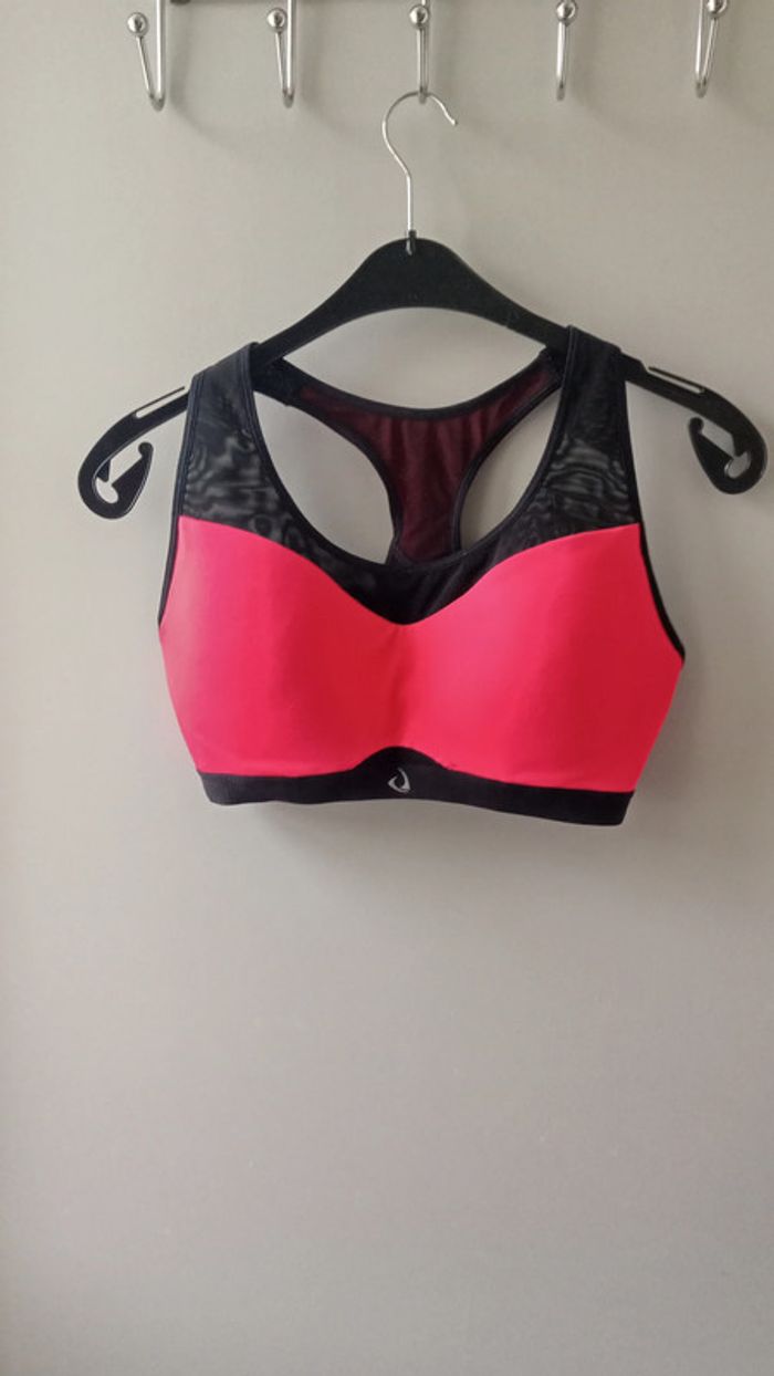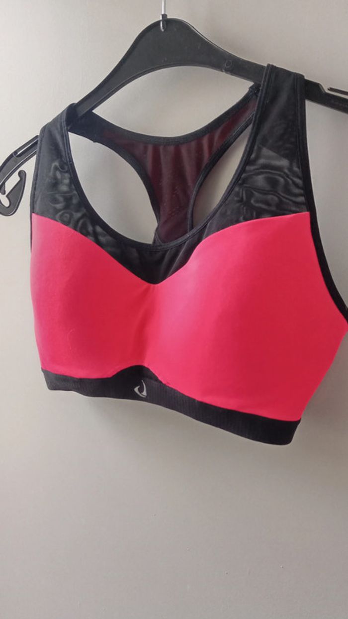 Brassière de sport noir et rose Matière légère et anti transpirante Coqué sur le devant #brassièresporttailleL #brassièresportnoiretrosetailleL