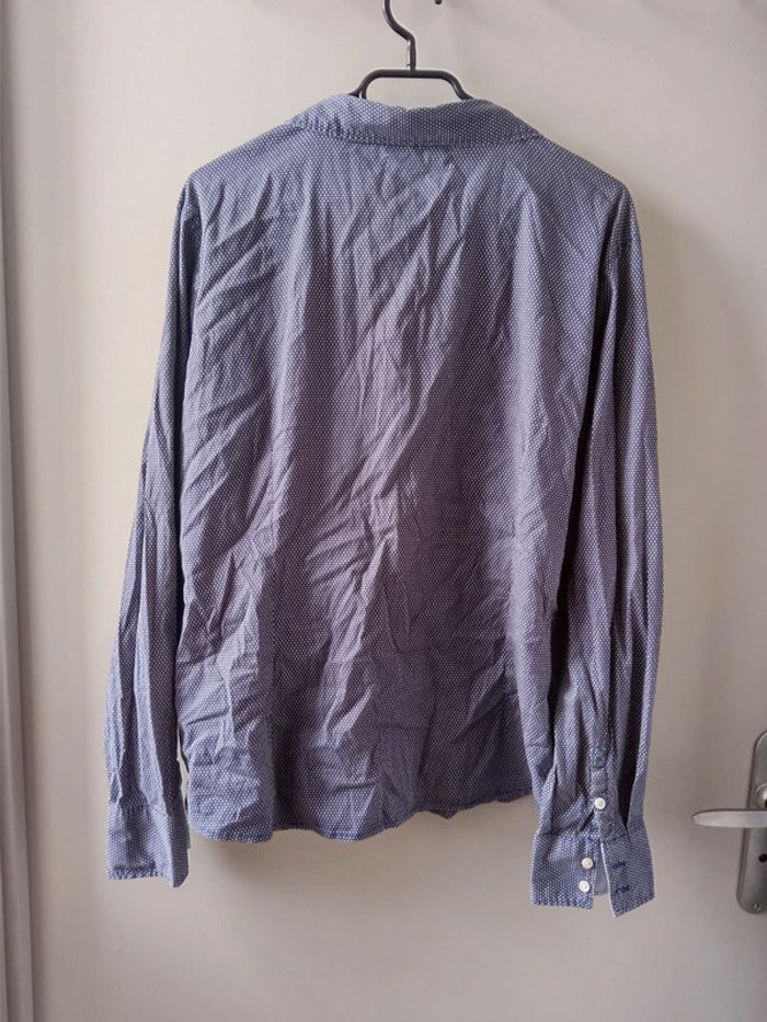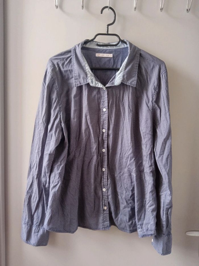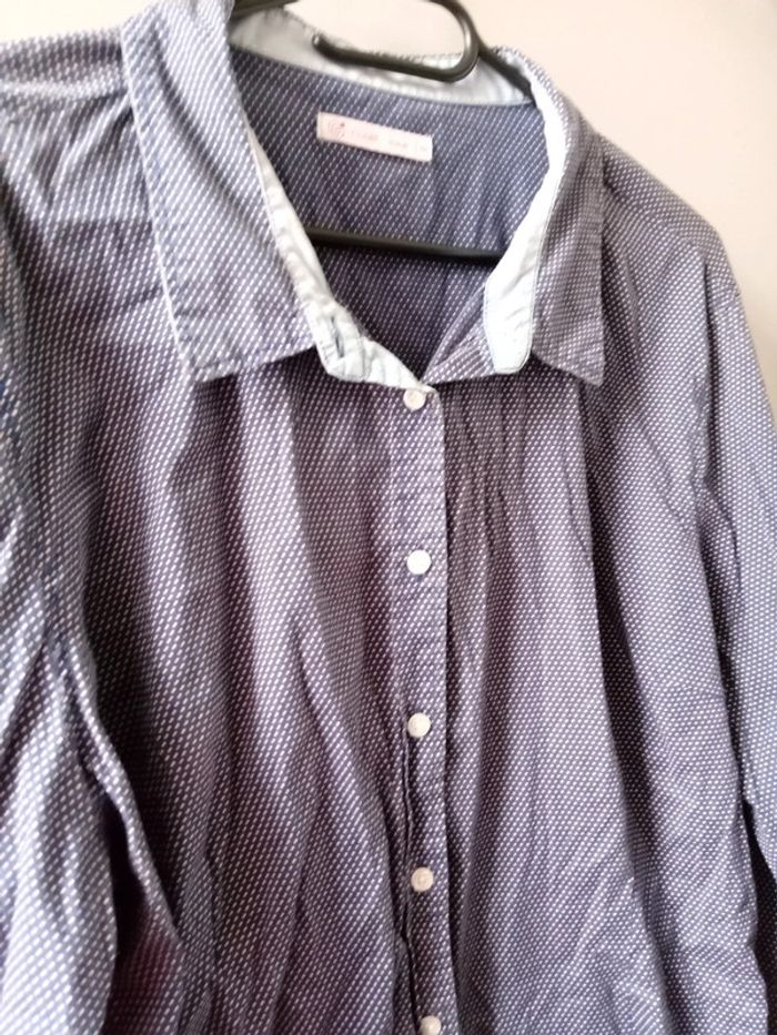 Chemisier/ chemise bleu à pois blanc. Matière extensible #chemisierpoisblanc48 #chemisestretch48