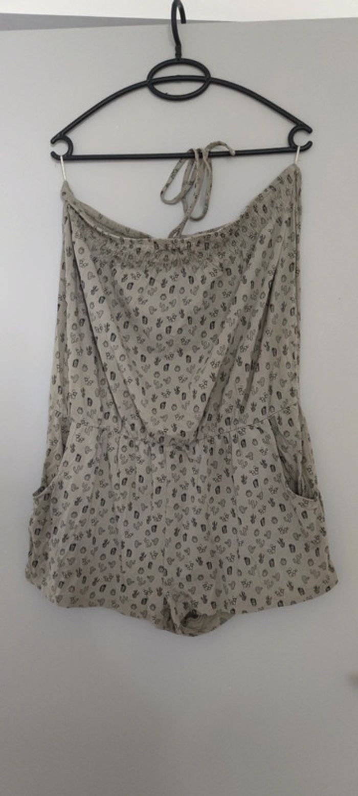 Combi short stretch, kaki avec imprimé Cactus Deux poches, possibilité de nouage autour du cou XL: 46-48 #combishort #combishort4648 #combishortkiabi