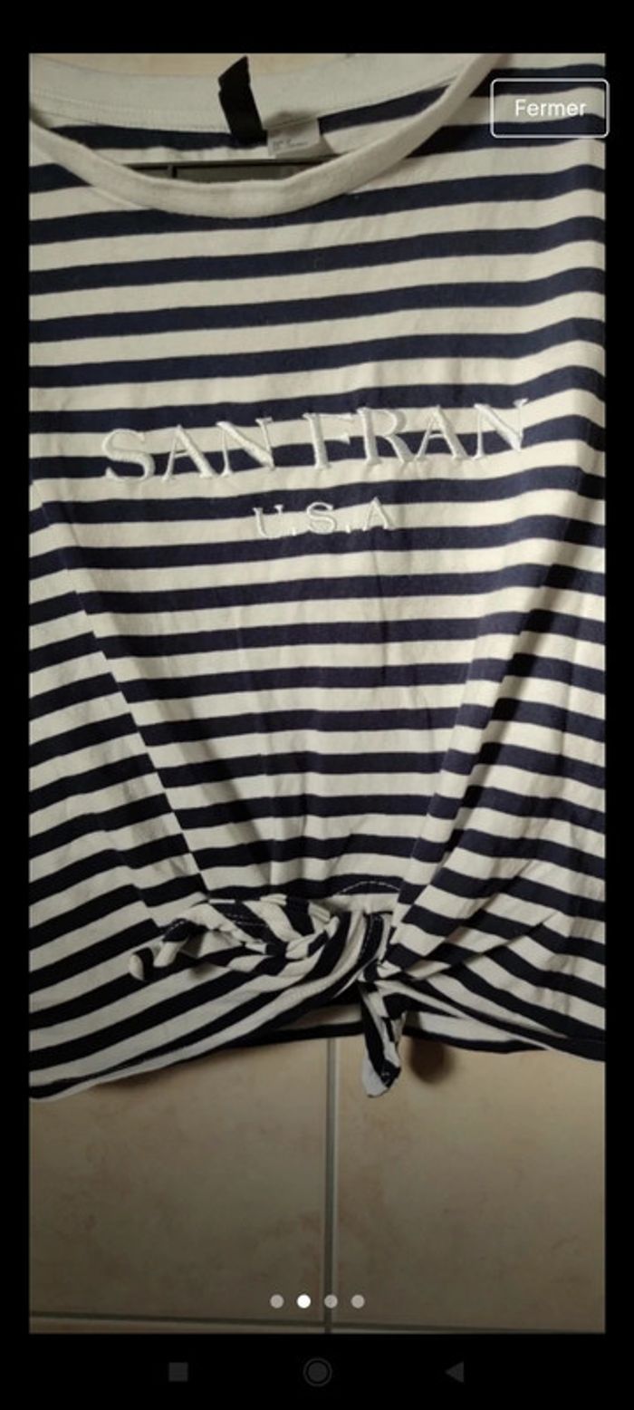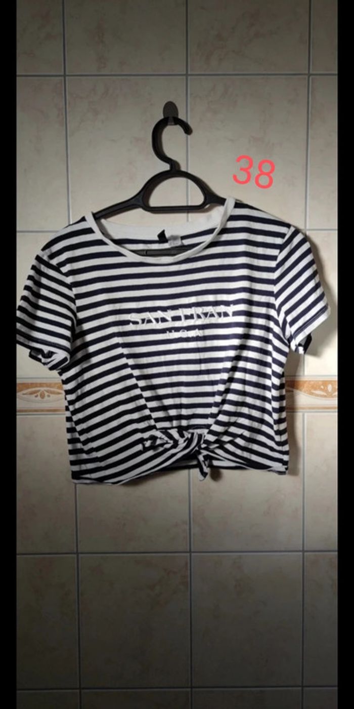 Top court imprimé marine Nouage noeud sur le devant #topcourt38 #topcourtmarin #toocourthetm